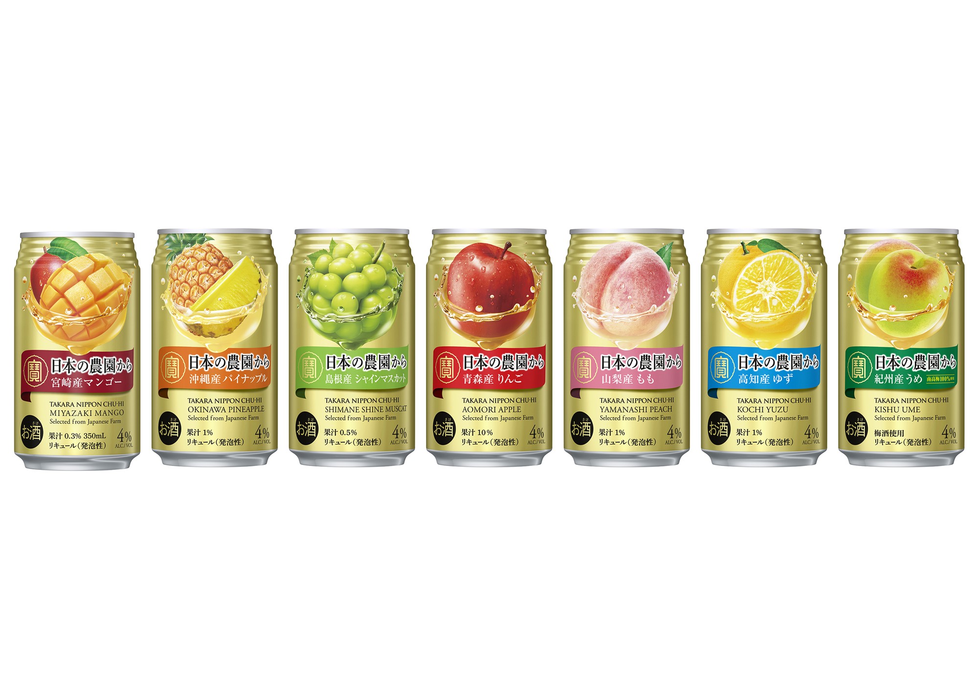 “寶NIPPON CHU-HI「日本の農園から」”は、ベースアルコールに宝焼酎を使用し、日本の有名な産地で収穫された果実を厳選して使用した、果実の美味しさを楽しむアルコール分4%のチューハイで、海外専用商品として2019年より発売しています。