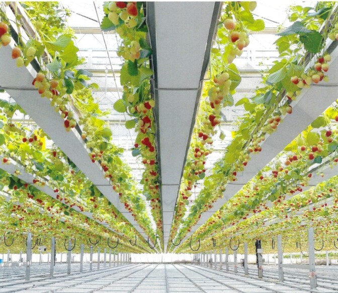 栽培面積2,816m2の太陽光利用型植物工場で土耕によるイチゴ栽培