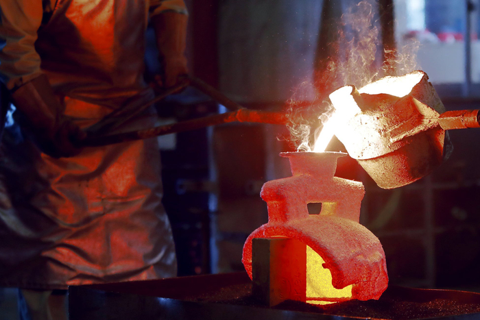 創業50年を越えるキャステムが、これまで培ってきた精密な金属部品を製造する技術「精密鋳造技術(ロストワックス製法)」にて、鋼の一種であるステンレス鋼を1,700℃の温度で溶かして型に流し込み製作。