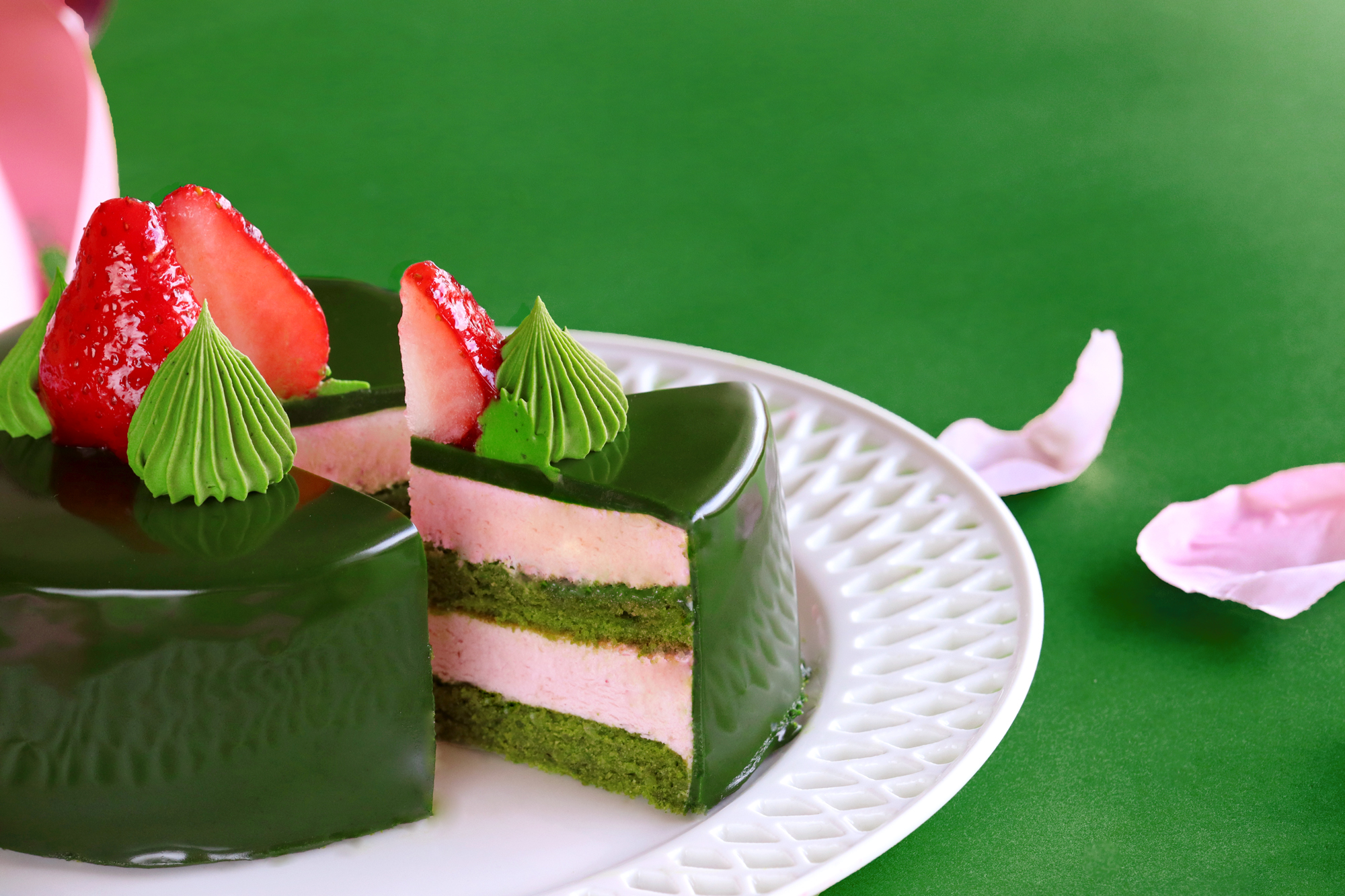 いちごの甘酸っぱさと抹茶のほろ苦さ~軽やかな口当たりの春ケーキ~
