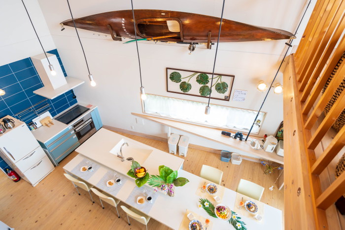 ビーチを想わせる白を基調としたこだわりのデザインと開放感あふれる吹き抜け。