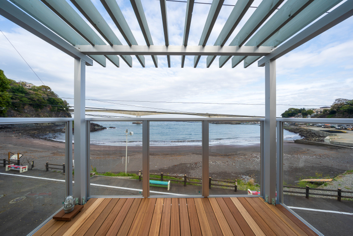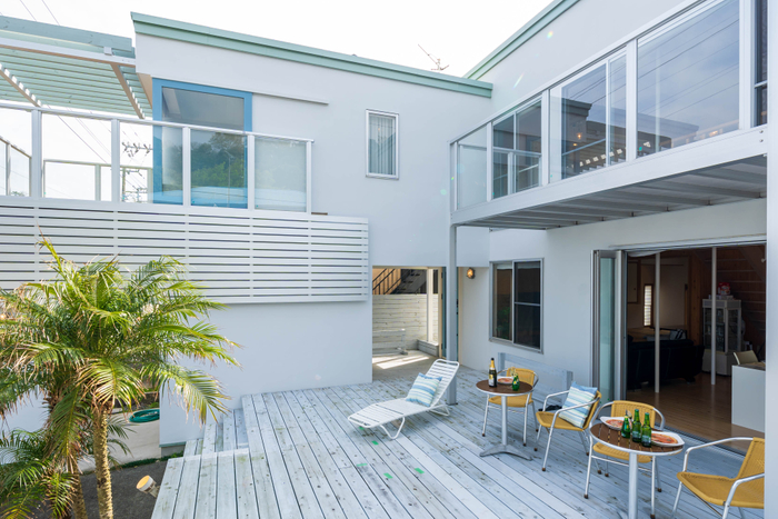 海を一望する広々としたデッキテラスとバルコニーを完備。