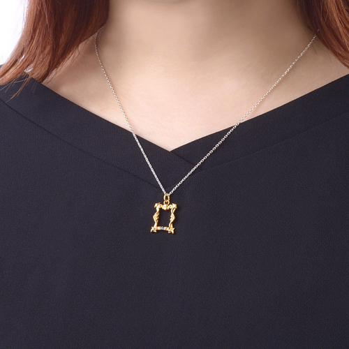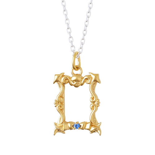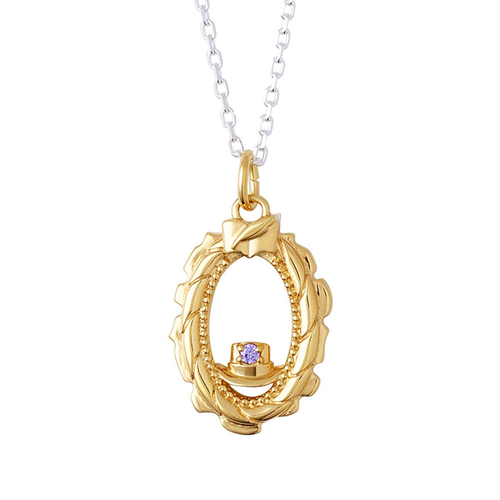 作品の世界観をイメージしたクラシカルなフレーム型のトップに、イメージカラーストーンをセット。