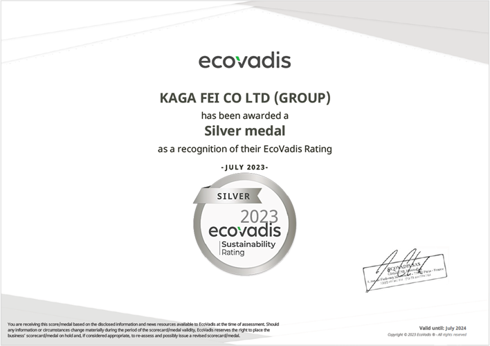 加賀FEI株式会社(注1)は、EcoVadis社(本社:フランス)が提供する世界で最も信頼されるサステナビリティ評価において、2023年「シルバーメダル」(上位25%)を獲得しました。