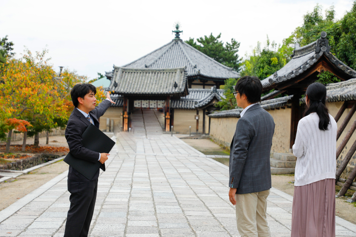 法隆寺の見どころや歴史を熟知した「語り部」が、ガイドブックや教科書とは異なる切り口で、法隆寺の魅力をお伝えします。当館宿泊者限定で参加が可能です。
