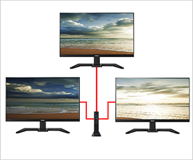 搭載されている映像出力端子として、DisplayPort 2ポート、HDMI 1ポートがあります。これらにより同時に最大3画面出力が可能です。多画面出力することにより資料やファイルデータなどを被らせずに表示させることで視認性・生産性向上を実現できます。