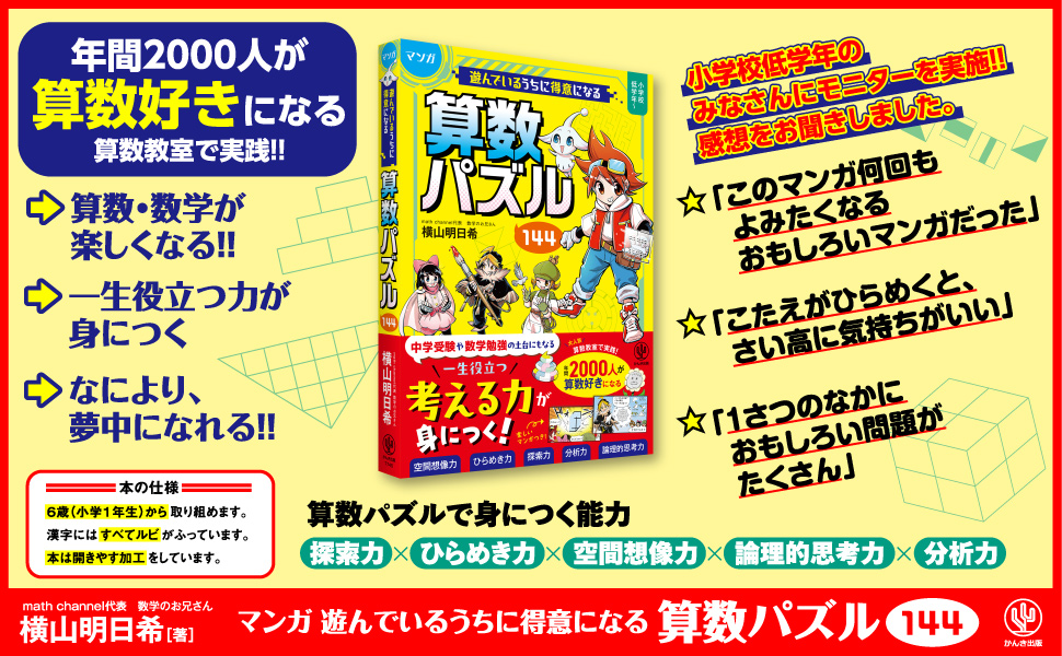 株式会社かんき出版(本社:千代田区 代表取締役社長:齊藤龍男)は、『マンガ 遊んでいるうちに得意になる 算数パズル144』(横山明日希/著)を2024年6月19日より全国の書店・オンライン書店等(一部除く)で発売いたします。