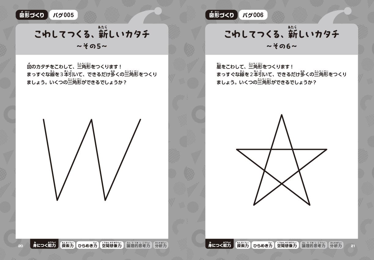 かんたんそうに見えて意外と解きごたえのある問題ばかりなので、親子で一緒に楽しめます。