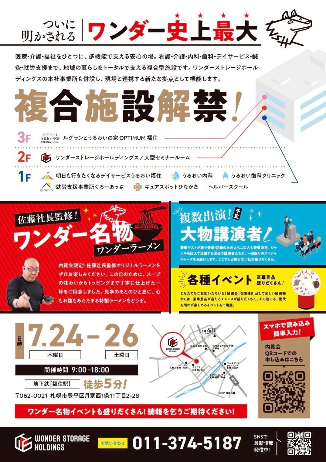 <北海道初!※>本社機能とクリニックを併設した介護福祉総合施設 ワンダーストレージホールディングス(株)新本社、 札幌月寒にOPEN! ~先行内覧会7/24(木)より開催~ ※自社調べ