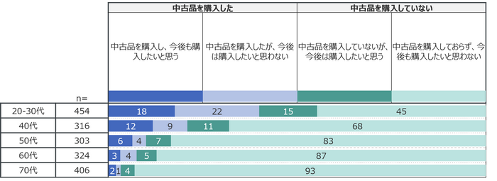 【中古品ゴルフウェアの購入実態における年代別の特徴】
