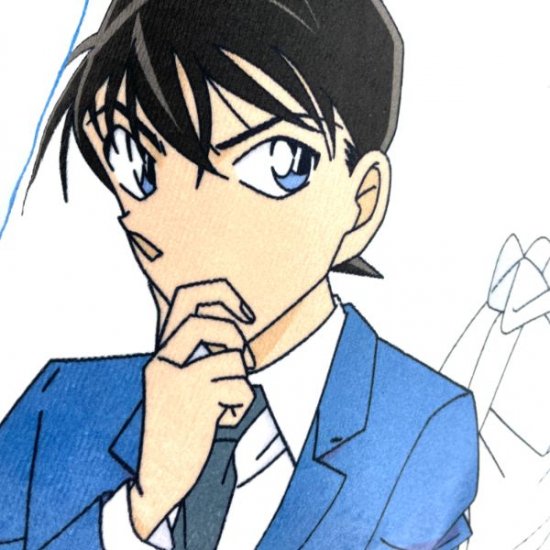 考え込む工藤新一と、