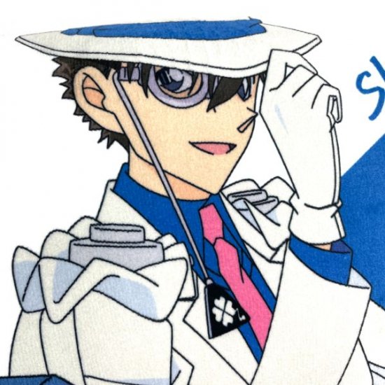 いつものカッコいい笑顔を見せる怪盗キッドが描かれた、トスピロークッション。発色も綺麗でいいですね。
