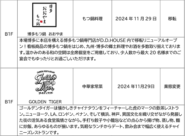 2025年に開業40周年を迎える「D.D.HOUSE」は、今回、地下1階フロアのリニューアルを行います。長年愛されている既存店に加え、大阪の駅前ビルや難波の路面で人気の飲食店が新たに仲間入りし、「賑やかに楽しめる開放的な呑みエリア」と「個室のある落ち着いた雰囲気の呑みエリア」で構成することで、幅広いニーズに対応したフロアに生まれ変わります。