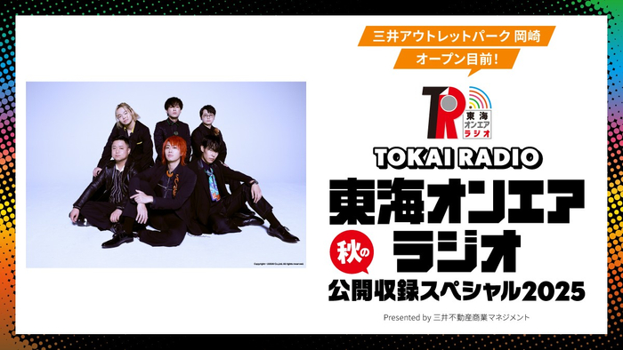 人気YouTuberグループ「東海オンエア」によるラジオ公開収録イベント『三井アウトレットパーク 岡崎オープン目前!東海オンエアラジオ 秋の公開収録スペシャル2025 presented by 三井不動産商業マネジメント』の開催が決定しました。このイベントは、三井アウトレットパーク 岡崎のオープンを記念し、TOKAI RADIOと三井不動産商業マネジメントがタッグを組み、東海エリアを中心に多くのファンに愛される「東海オンエア」がラジオを飛び出し、リスナーの前でより身近に感じていただける特別な機会です。この番組の公開収録は約2年半ぶり、メンバー6人が勢ぞろいしてファンの前に立つのは、2023年の活動休止後、初めてとなります。