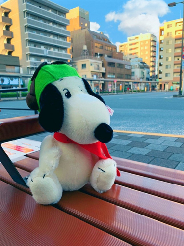 まずは、お出かけ最初にパシャリ。太陽光に照らされたスヌーピーの色味は、室内の明かりとはまた異なった趣がありますよ♪