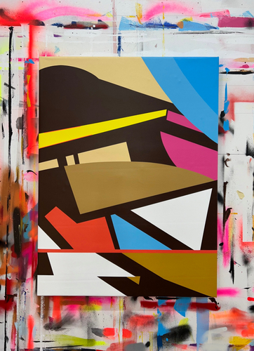 バウハウス運動とジョセフ・アルバースの色彩理論に大きな影響を受けた最新作のMecanicoは、グラフィティからメカニカルなスタイルへの進化に焦点を当て、シャープな線の使い方と大胆な色使いが微妙なブレンドで溶け合い、さまざまなテクスチャーの中で大胆なコントラストで画面に動きを生んでいます。