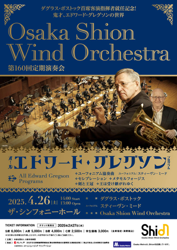 日本で最も長い歴史と伝統を誇る交響吹奏楽団の Osaka Shion Wind Orchestra を有する公益社団法人大阪市音楽団(本社:大阪市住之江区/理事長:石井徹哉)は、2025年4月26日(土)に開催のダグラス・ボストック首席客演指揮者就任記念演奏会「第160回定期演奏会」のプログラム全曲を発表いたしました。