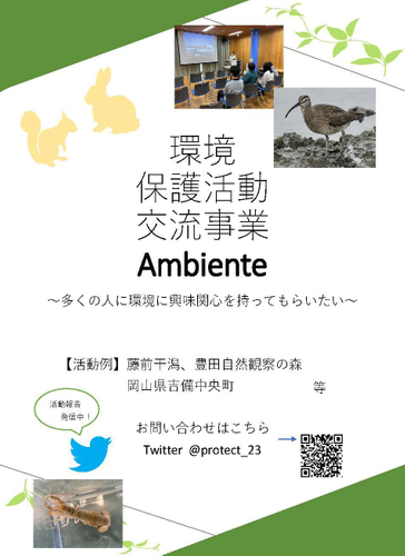 本学の野生動物生態研究会というサークルから派生した「Ambiente」は、藤前干潟の環境を守りたいと活動をスタート。今では藤前干潟に限らず、全国各地に足を運んで環境保護活動に参加するほか、環境保護団体とのネットワークを広げています。