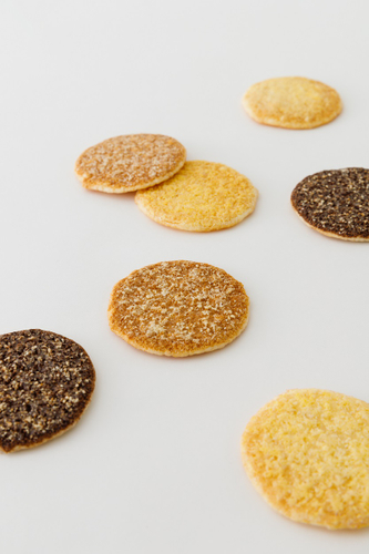 『Colo‘UR’ice(カラリス)』“CRAFT Beika(クラフトベイカ)”は、薄く焼き上げた米菓の生地に、“手作業”でフロランタンパウダーと砕いたカシューナッツをかけオーブンで焼いた新商品。