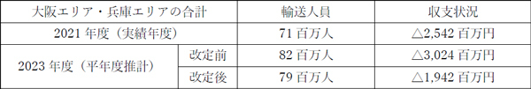 2023年度平年度推計(改定後)の輸送人員および収支状況は、申請上限運賃での推計値です。