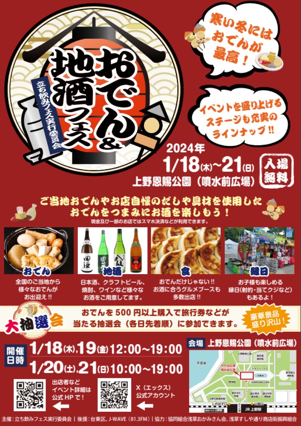 寒い冬にはおでんが最高! 『おでん&地酒フェス』1月18日(木)~21日(日)に 上野恩賜公園にて開催