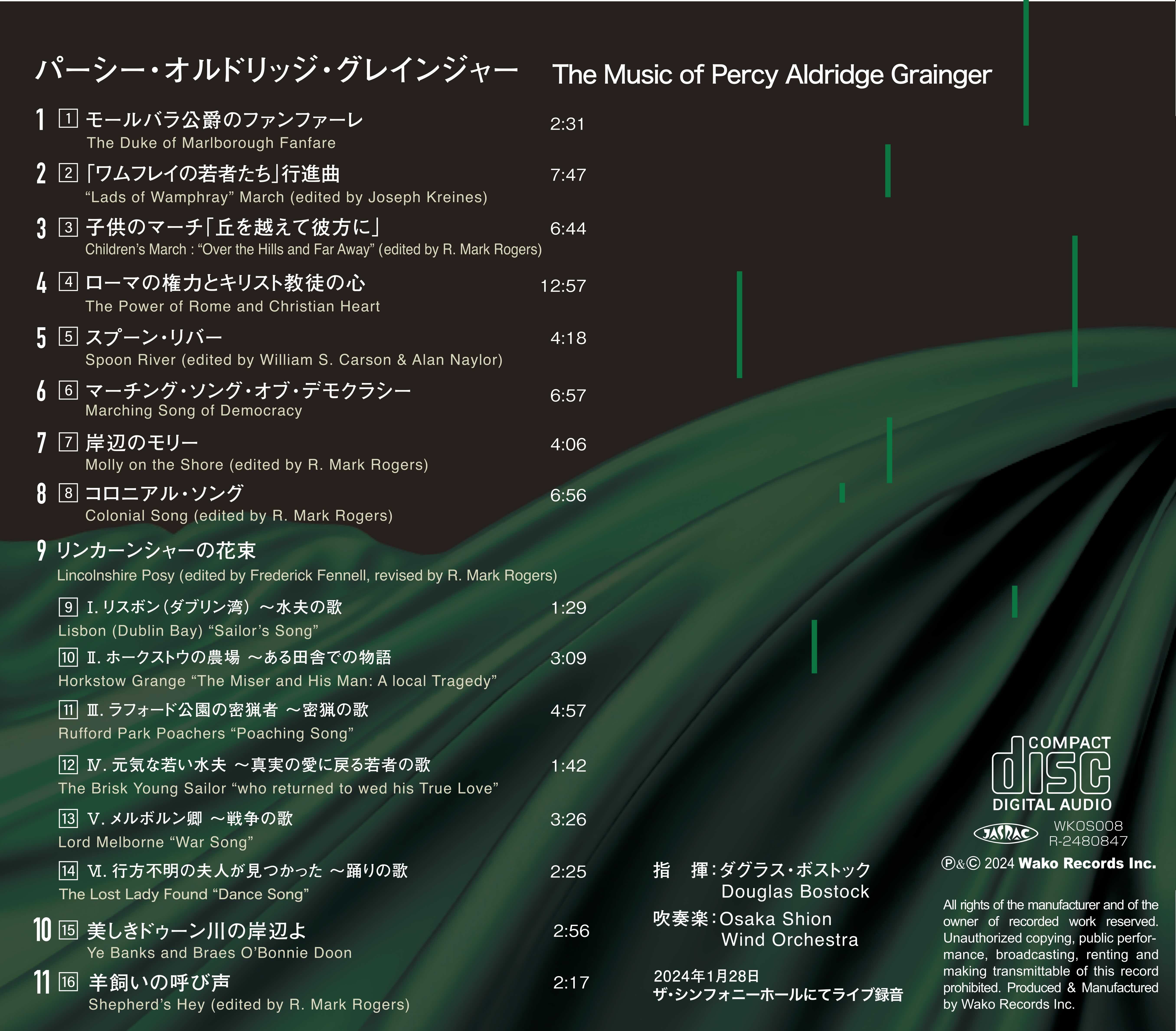 日本で最も長い歴史と伝統を誇る交響吹奏楽団のOsaka Shion Wind Orchestraを有する公益社団法人 大阪市音楽団(本社:大阪市住之江区/理事長:石井徹哉)は、ダグラス・ボストックが指揮を務めたCD「リンカーンシャーの花束」のリリースを決定しました。