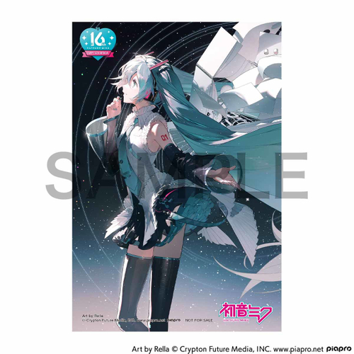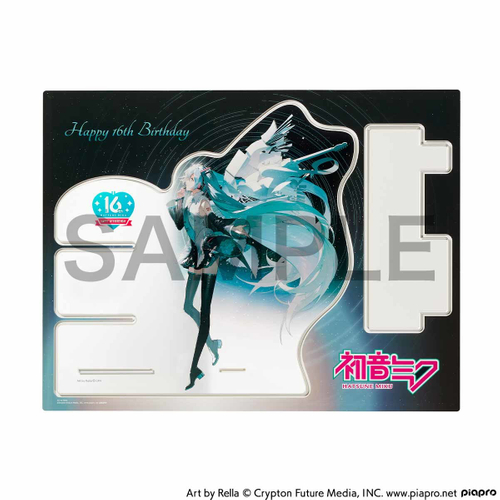 イラストレーター・Rellaさんが描いた「初音ミク Happy 16th Birthday -Dear Creators-」のメインビジュアルを使用した展示用アクリルスタンド付き。