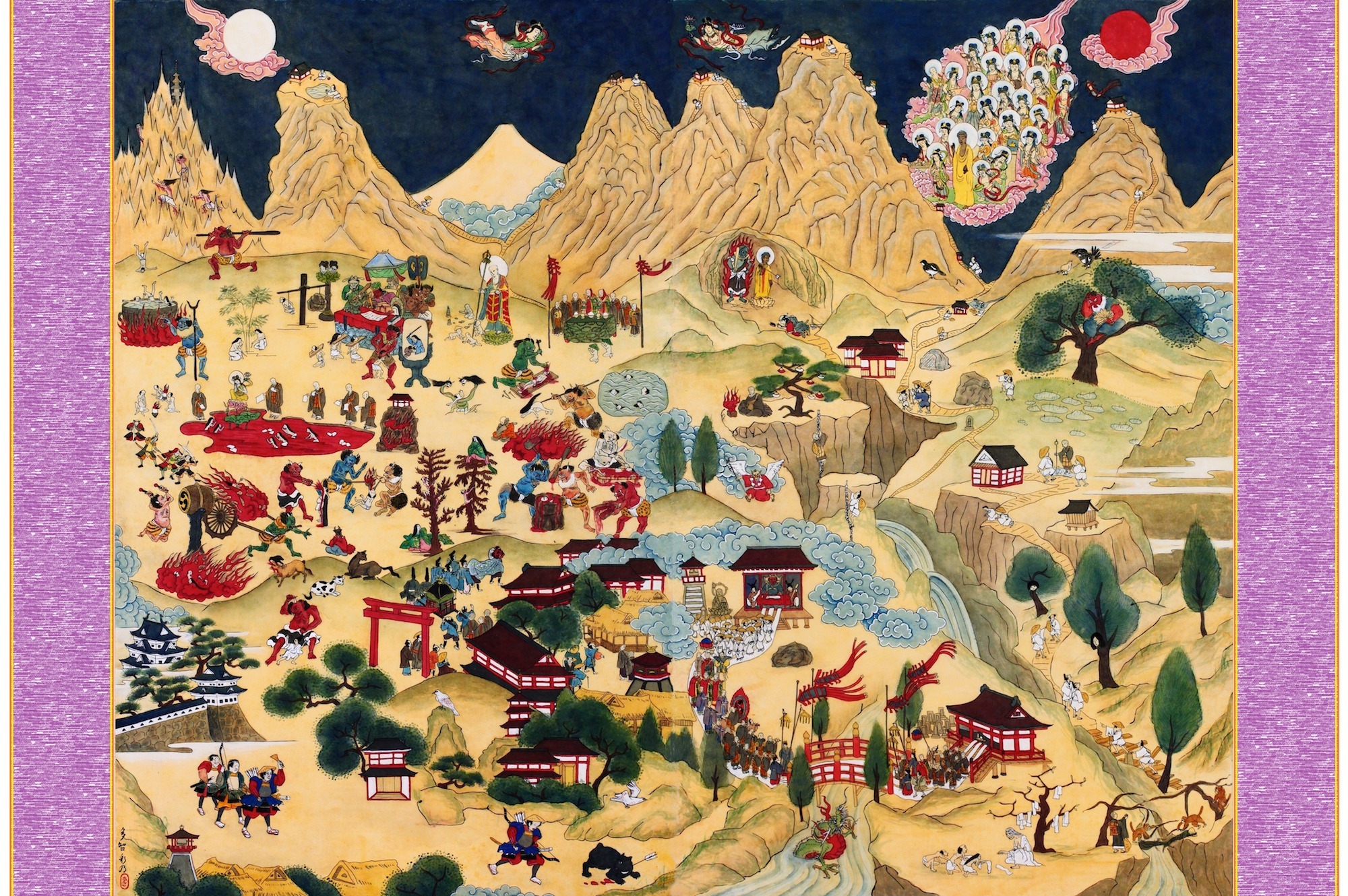日本三霊山の一つと言われる立山は、古代より山岳信仰の対象でもありました。今回の旅では、立山の歴史文化に詳しい山岳ガイドで、プロスキーヤーでもある佐伯知彦さんを案内人に迎え、立山信仰の世界観が凝縮した掛軸式絵画「立山曼荼羅」を使って、立山に残るさまざまな伝説や立山信仰の歴史を紐解いていただきます。