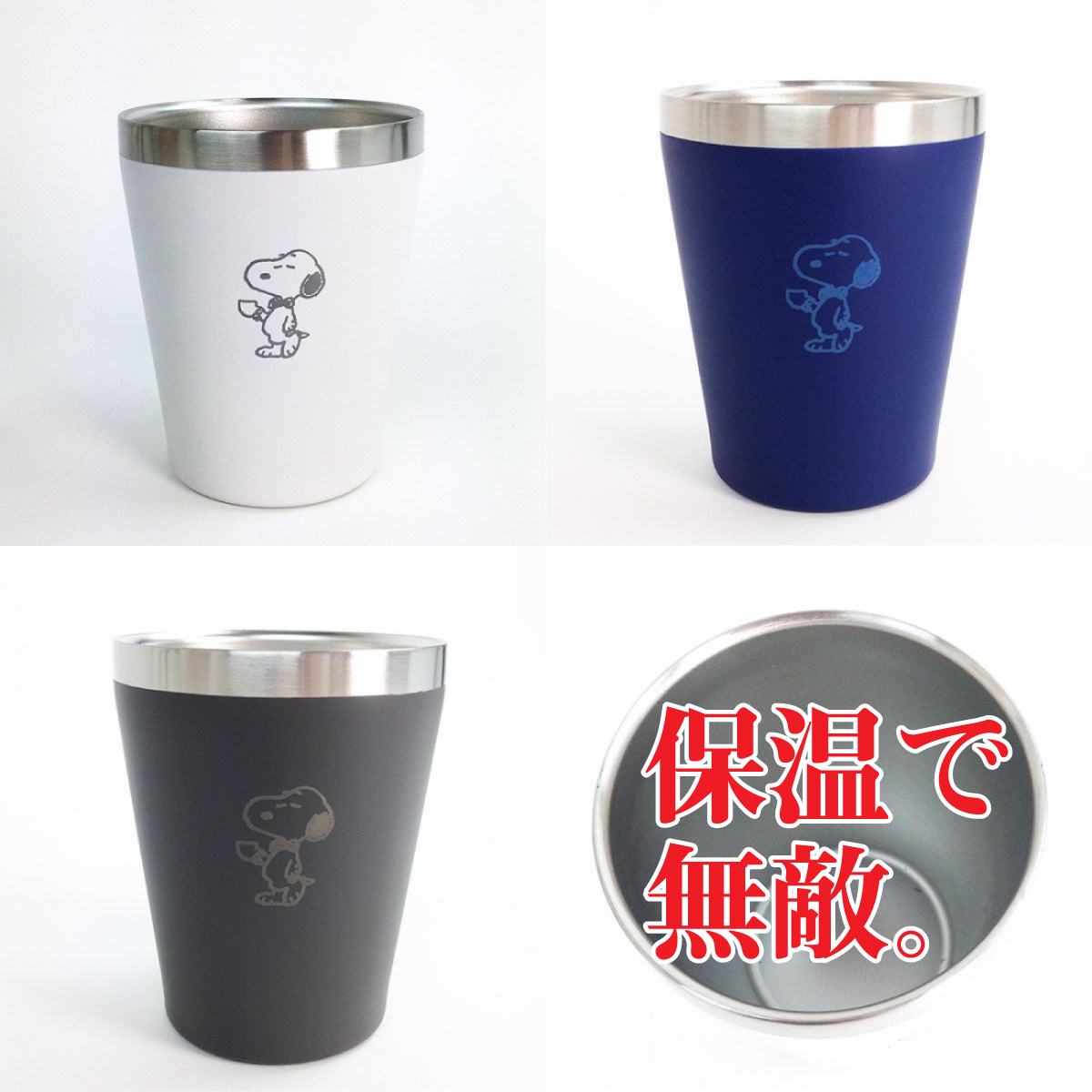 ステンレス素材で保温&保冷ができちゃう、スヌーピーのタンブラーはいかがでしょうか。