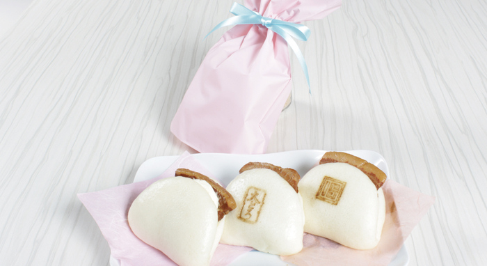 「おかあさん」「ありがとう」「ハート」の3種類で、特別な焼印の角煮まんじゅうをご用意いたしました。
