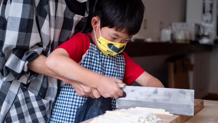 コワーキングスペースを兼ね備えた宿泊施設「働Co-livingみなのsubako」を貸切にしたイベントでは、埼玉県より「ふるさとの味伝承士」に選ばれた皆野町在住の阿佐美氏によるうどん作り体験を行います。うどんは秩父地域の家庭料理で、昔は家でうどんを打つのは普通のことだったと阿佐美氏は話します。地域に根付く伝統的なうどん作りを地元のおばあちゃん達が丁寧に教えてくれます。