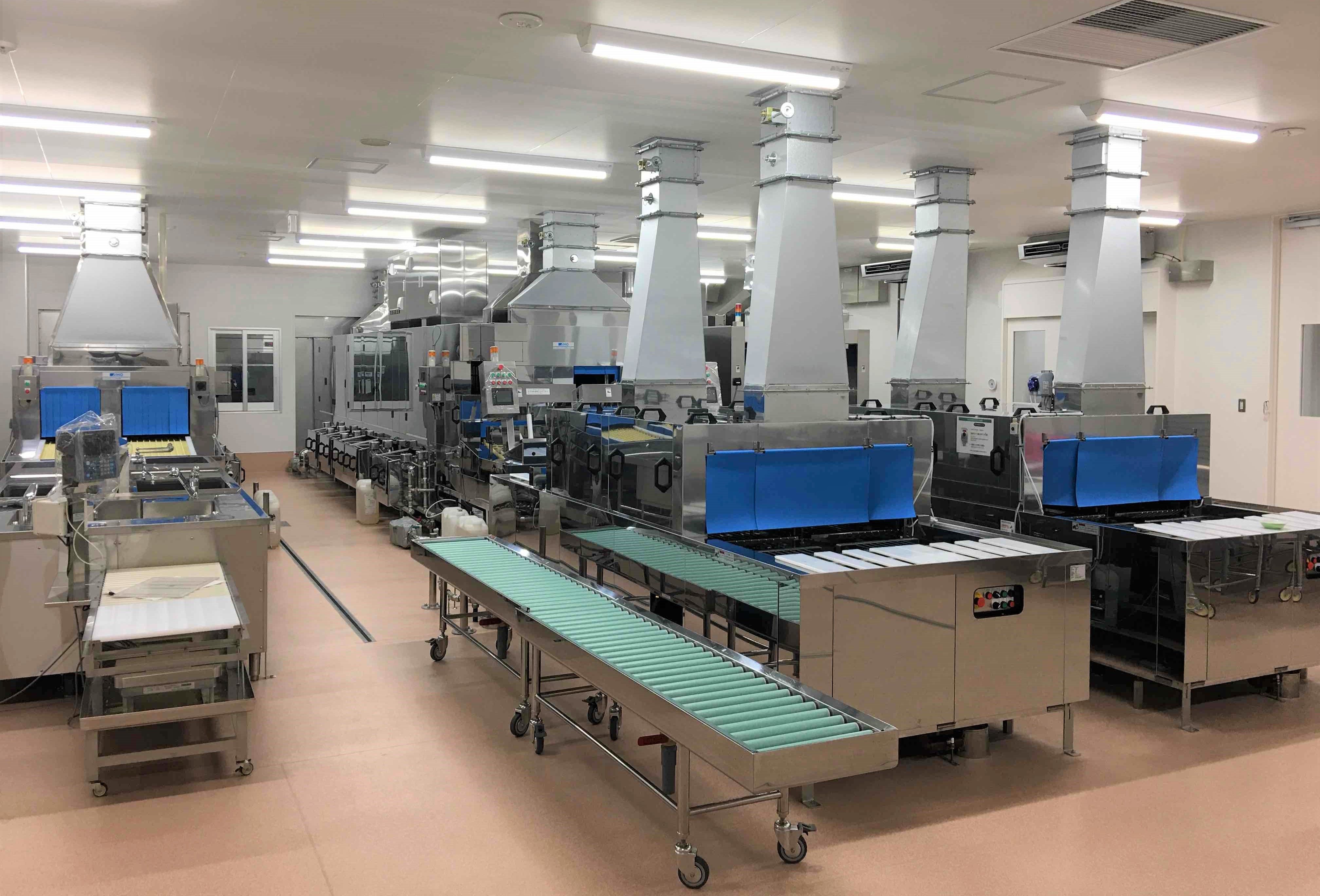 大量調理から食器洗浄に至るまで最新鋭の設備を導入し、HACCP(※2)に基づく「安心・安全」な衛生管理と作業工程を実施するほか、ドライシステムの導入、検品、食材保管から下処理、調理、盛付まで一括作業できる「食物アレルギー等対応室」(1日50食調理可)も設置。また、不登校特例校にも供給できる体制(1日30食程度)にしています。