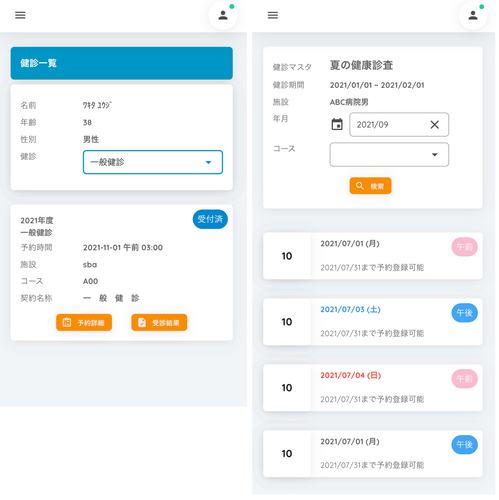●社員向け:予約管理、健診結果閲覧、健診AI連携