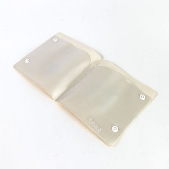 ポリ塩化ビニール素材なので汚れてもサッと拭けますよ。食事中のマスクって置き場所にかなり困りますよね。そんな時のお助けグッズとしておすすめですよ♪
