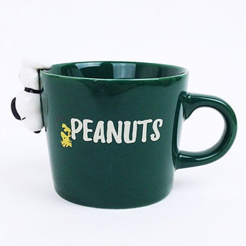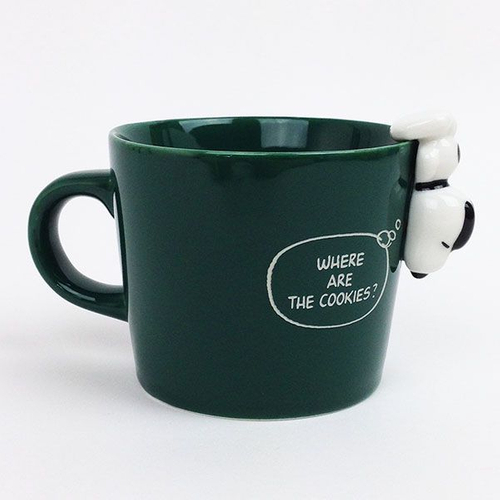単品でもかわいい、フィギュアつきマグカップも登場です。深いグリーンのカップに白地のロゴが映えるデザインです。カップにへばりついたようなフィギュアがキュートですよね♪