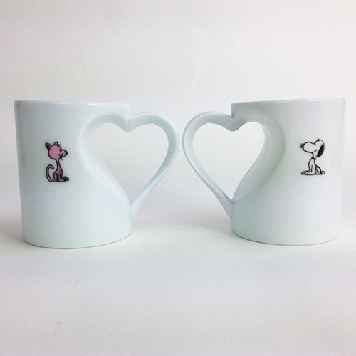 持ち手がハートになったペアマグです。それぞれにスヌーピーとファーロンが描かれています。見ているだけでラブラブな気分になれそうです。