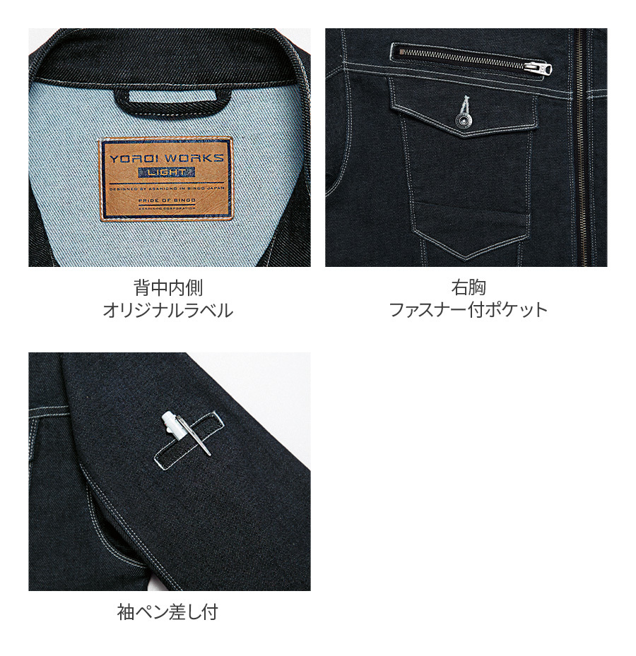 「YOROI WORKS(R) LIGHT」は、同じくAsahichoから販売されている「YOROI WORKS(R)」から派生したデニムワークウェアで、ストレッチ性とジャージの様な肌触りを兼ね揃えています。