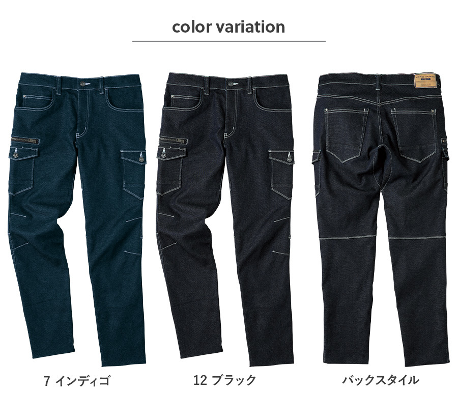しかし、作業現場においては作業者の身を守る耐久性だけではなく、体を動かしやすいストレッチ性と長時間着ていても疲れない着心地が求められます。今回、より着心地の良いものとして商品化いたしました。特徴的なのはジャージライクな伸縮性を持ち、表は綾立ちの良い綿デニム、裏は滑らかなパウダリータッチの肌触りになっており、作業者に動きやすさと疲れにくさを与えてくれます。あらゆるワークシーンで活躍する事間違いありません。