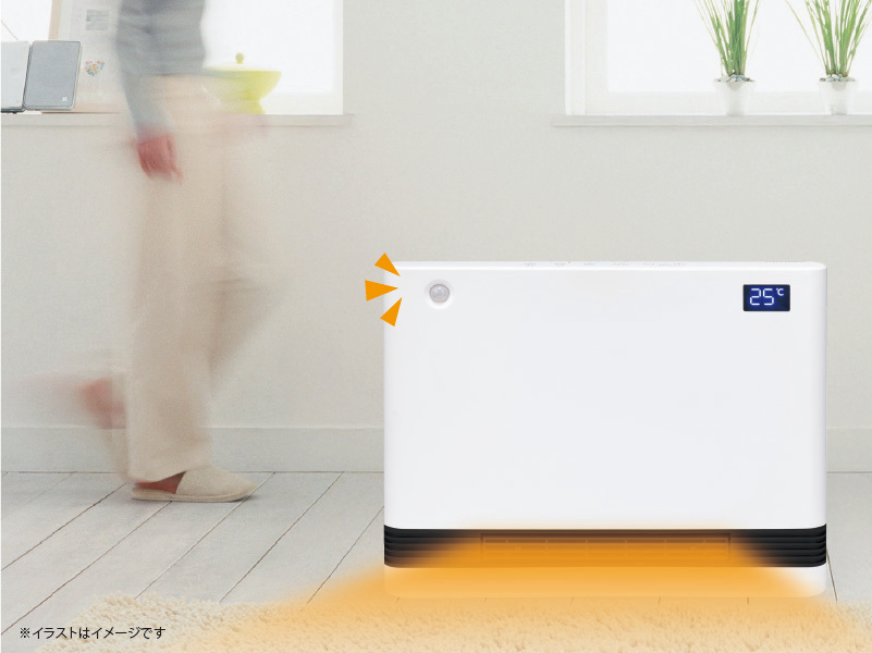 設定した温度に合わせて自動で運転を制御する「温度センサー」は、お部屋が暖まりすぎるのを防ぎ、常に快適な室温をキープします。