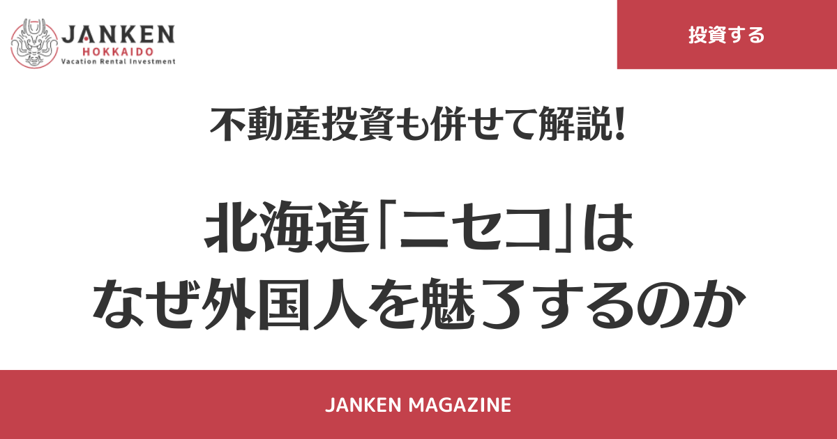JANKENマガジンでは、「投資」「開業」「運営」「観光」という4つのカテゴリーを設置しています。このうち、「投資」「開業」「運営」カテゴリーでは北海道での不動産投資に関する情報を、「観光」カテゴリーではニセコ・富良野などのリゾートエリアを中心に北海道の観光情報を、それぞれ提供しています。