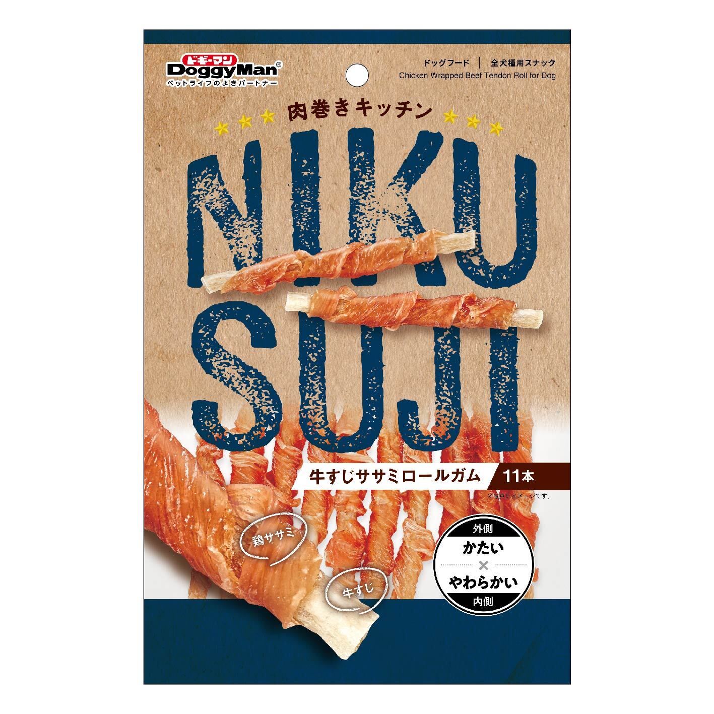ハードな食感に仕上げた鶏ササミを、牛すじを使用したしなやかさのあるソフトガムに巻きつけたハード&ソフトタイプ。噛めば噛むほど素材の旨みがあふれ出ます。保存料、着色料、発色剤、酸化防止剤無添加。(内容量11本)