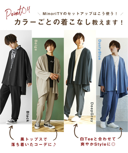 センス良くリラックスした毎日を過ごしたい、明日へ一歩をゆる~く自分らしく踏み出したいあなたに、MinoriTYは「センス」と「リラックス」なスタイルを楽しんでいただけるアイテムを提案します。多くの人たちが少しでもストレスから解放され、ほっとひと息つける・気持ちが軽くなる生き方・装い・ライフスタイルを見つけられるブランドでありたいと願っています。