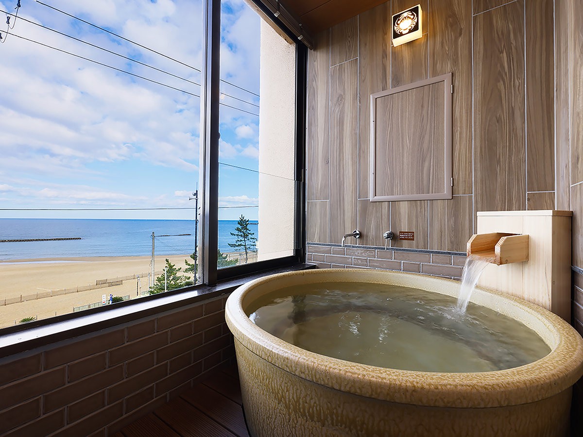 湯船に身をあずければ、目の前にはどこまでも続く日本海を一望。