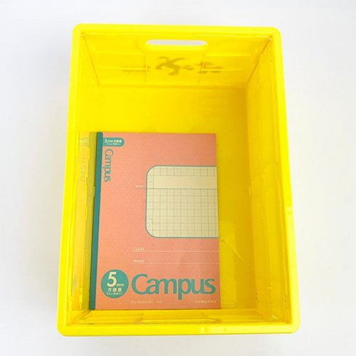 まずはこちらのSサイズ。おもちゃや本を片付けたり、掃除用品や用具を収納したりいろいろ使い道がある収納コンテナです。来客時に見せたくないものをポンポン入れて一時的な収納スペースとしても使えます。かわいいだけじゃなく、とても便利なコンテナはひとつは持っておきたいアイテムです♪