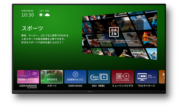 「飲食店のスポーツ上映」でDAZNとUSENが連携 DAZN初!スマートTVに「DAZN FOR BUSINESS」を搭載したセットプランの販売開始