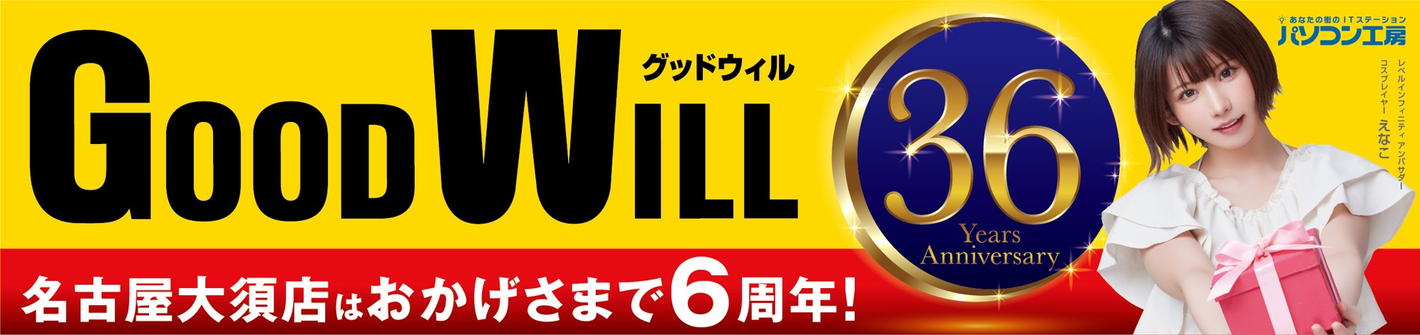 ■【パソコン工房 グッドウィル 名古屋大須店】にて10月11日(土)より「グッドウィル 36周年記念セール ~名古屋大須店は6周年~」を開催