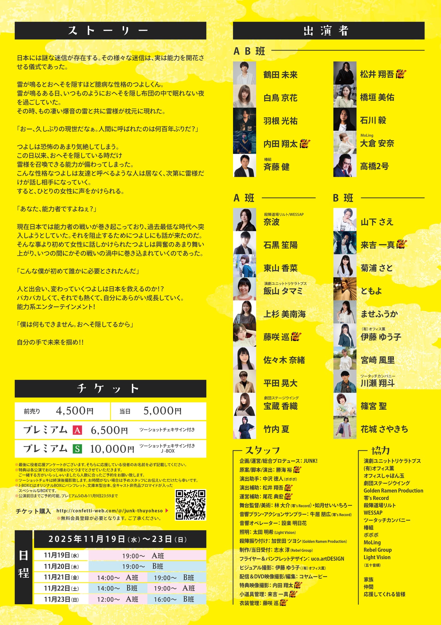 TikTok、YouTube、ラジオでも活動するJUNK!の本公演『つよし君の不思議なおへそ』11月19日 (水) 開幕! 10月下旬より順次ビジュアル解禁