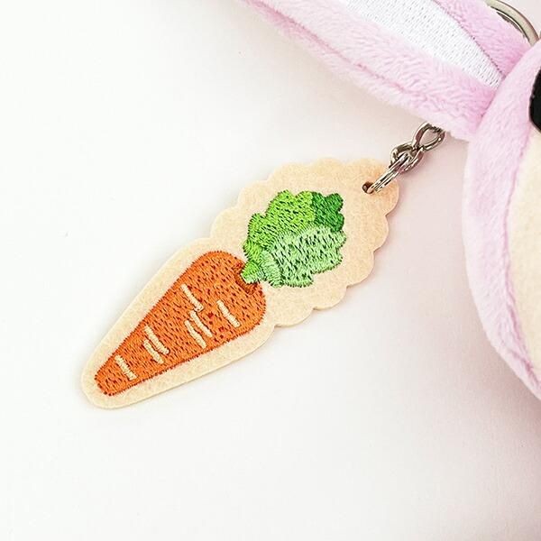 うさぎの好物である、人参の刺繡チャームもワンポイント。キーリング付きのため取り外しも可能ですよ。