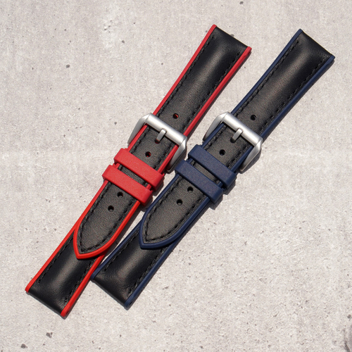 人気の高い既存のロシェールカーフとロシェールグレインに、ファッションのアクセントになるバイカラーが登場。表材のカーフ(牛革)が黒、裏材のラバーが赤・青の2色からお選びいただけます。