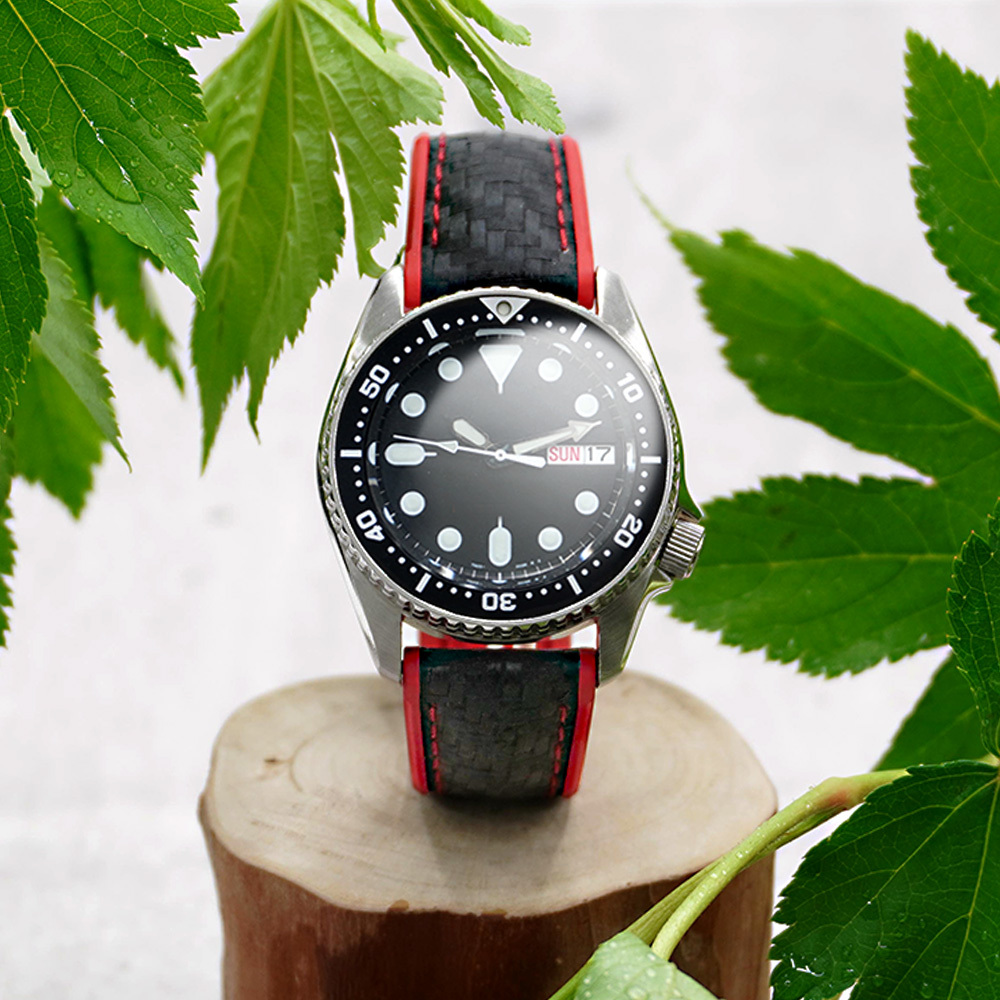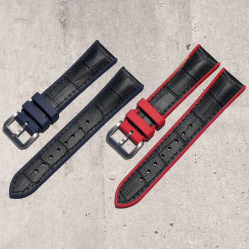 ロシェールシリーズは肌に触れる裏材をラバーにすることで、汗をかきやすいシーズンでも使いやすく、かつ高級感のあるデザインのシリーズです。ラバー面には格子状の溝が施され、長時間装着していても蒸れにくく、快適な着け心地です。また、尾錠は高級感のあるサテンシルバーを採用。カジュアルダウンしがちなラバーにアクセントを添えています。